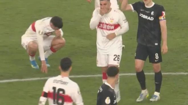 身体不适,斯图加特球员哈努斯在比赛中呕吐